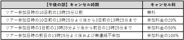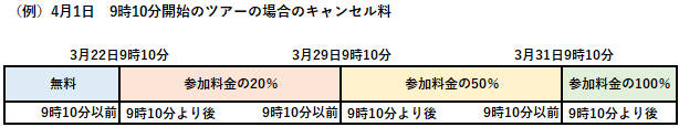 参加者名や参加日時など、予約内容変更の場合も取消料と同様の変更料がかかります。