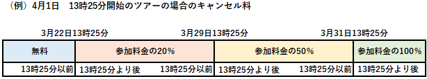 ・開催日の3日前~前日までの取消 参加料金の50%