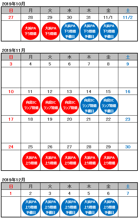 また大浜PA(上下線)出入口閉鎖時は大浜PAをご利用できませんので、他のSA又はPAをご利用下さい。