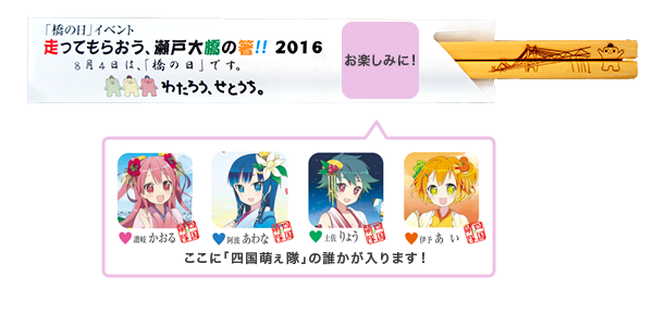 「橋の日」にちなみ、瀬戸大橋のイラストを刻印した特注の「箸」を、お食事等をされた先着2016名様にプレゼントいたします。
