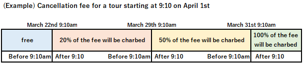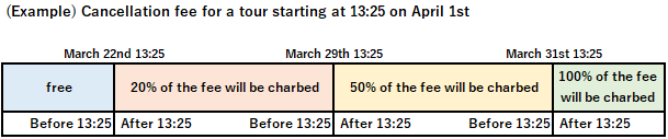 The change fee will be charged according to the cancellation policy even if you change your reservation information such as the number of participants or the tour date, etc.