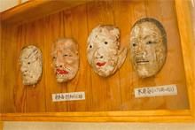 - 江戸末期から明治に使用された面。このほか、多数の面や衣装も展示されている