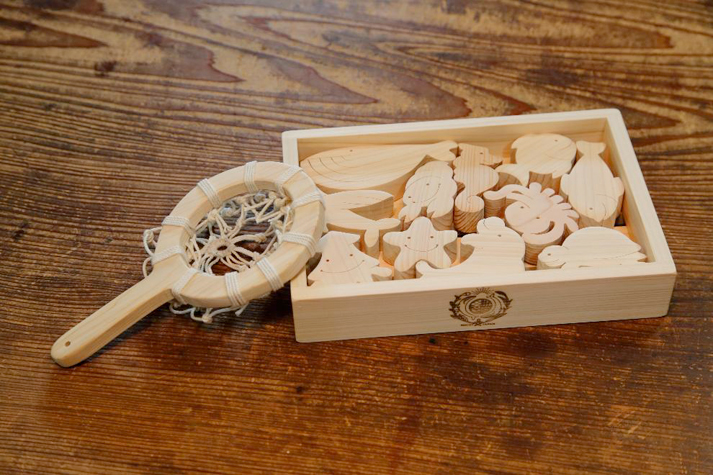 - 山のクジラ舎人気商品「おふろでちゃぷちゃぷ」。網ですくって遊んでね