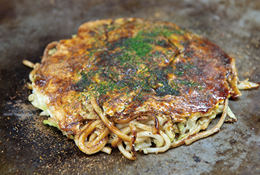 因島のお好み焼だから「いんおこ」。船に使われる鉄板で焼くのが島流だ。