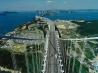6つの塔の中で最も大島側の塔(2P)から四国方向を撮影した写真です。ここは壁が高いため、撮影するためには足場を組む必要がありますが、多島海の自然美と来島海峡大橋の人工美がマッチした景観を、低空飛行の空撮のような視点を味わえます。