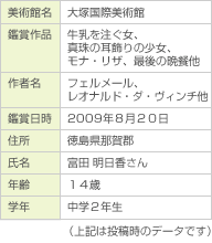 美術の先生がおっしゃったことを最新のテクノロジーで再現されたモナ・リザで確認できてよかったですね。アートは見たまま、感じたまま楽しめばよいとよく言われますが、知的な興味や関心が湧いたときには、作品を調査や研究の対象として、じっくり観察してみましょう。新たな発見があるかもしれませんよ。そして、そのことが新たな感動を呼び起こすにちがいありません。