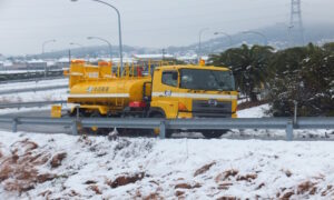 散水車による凍結防止剤散布状況