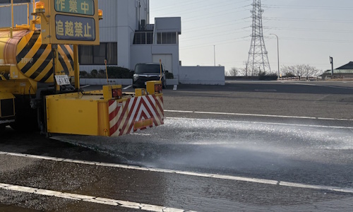 散水車による凍結防止剤散布状況