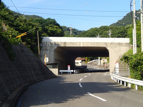 しまなみ海道の第三伊方(だいさんいかた)高架橋をくぐって、伯方SCパークのトランジションに向かいます。