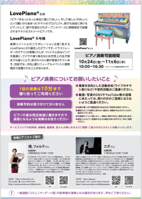 今年は、星野リゾートとヤマハミュージックジャパンのコラボレーション企画『旅するLovePiano』から誕生した「LovePiano®6号機」が登場します!